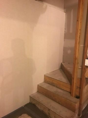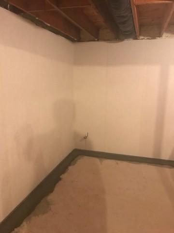 View of ThermalDry insulation installed on the wall and WaterGuard along the floor.